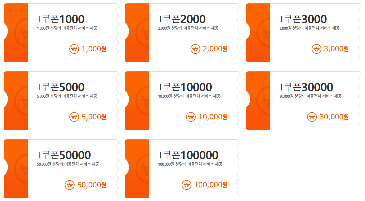 쿠폰 금액만큼 SK텔레콤의 이동전화 음성통화, 영상통화, 데이터통화, 문자서비스(SMS/MMS) 이용가능