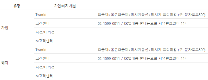 가입/해지 채널 안내