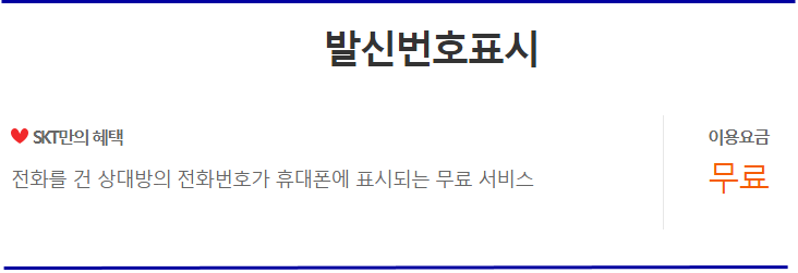 SK텔레콤 발신번호표시 부가서비스는 전화를 건 상대방의 전화번호가 휴대폰에 표시되는 서비스입니다.