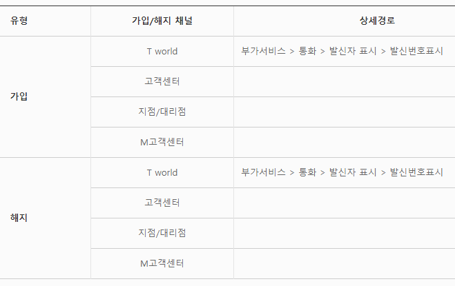 가입 및 해지 채널 안내