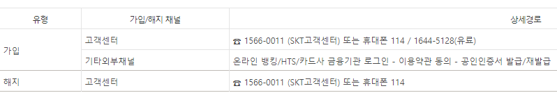 가입/해지 채널 안내