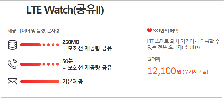 LTE 스마트 와치 기기에서 이용할 수 있는 전용 요금제 (공유II형)
