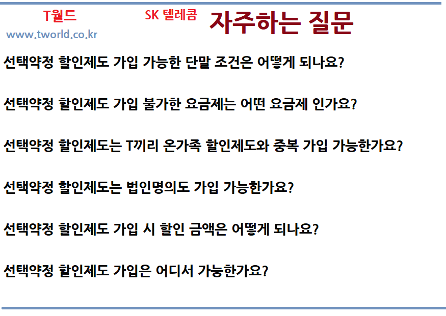 SKT 선택약정 할인제도 가입 가능한 단말 조건은 어떻게 되는지 알아보아요.